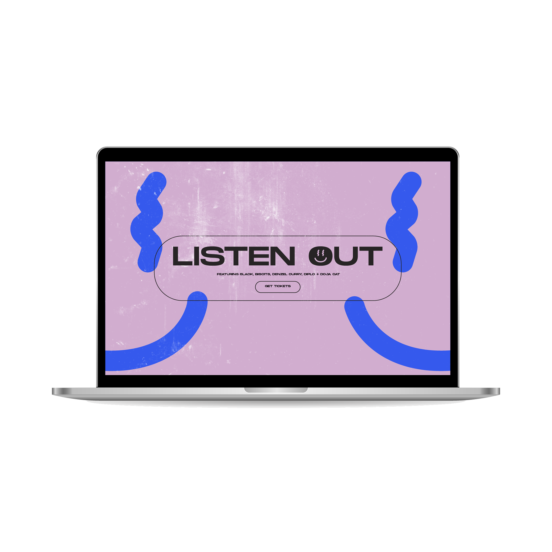 UNIVERSITY ASSIGNMENT: Listen Out Music Festival requested a grungy and modern refresh of their brand. Including, but not limited to, logo, app design, web page design and festival tickets/passes.`